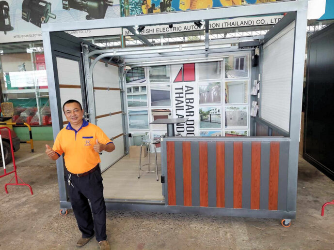 You can view a selection of our sample doors in the Ruangsangthai hardware store. Thanks to a high number of customers passing through every day and his contacts with Thai construction companies, even more customers will be able to benefit from our products in the future. Furthermore, when you visit there, you will find all the products you need for building a house.